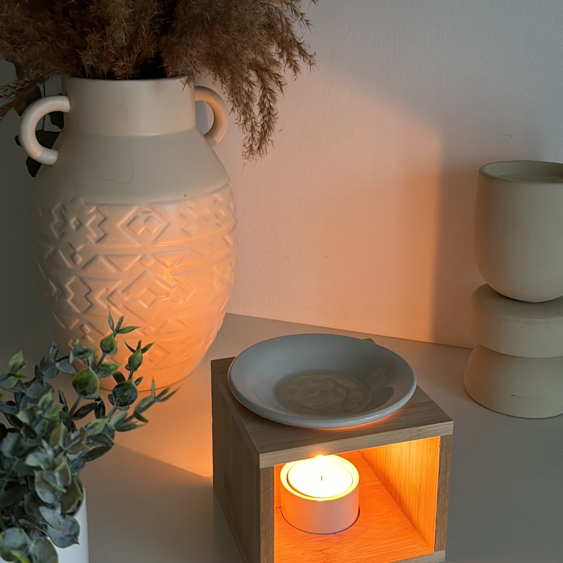 Alliant authenticité et chaleur, notre brûleur en bois met en valeur vos fondants parfumés Homebycelina. Son design naturel apporte une touche cosy et élégante à votre intérieur tout en diffusant délicatement vos senteurs préférées. L’accessoire idéal pour une ambiance douce et réconfortante.
